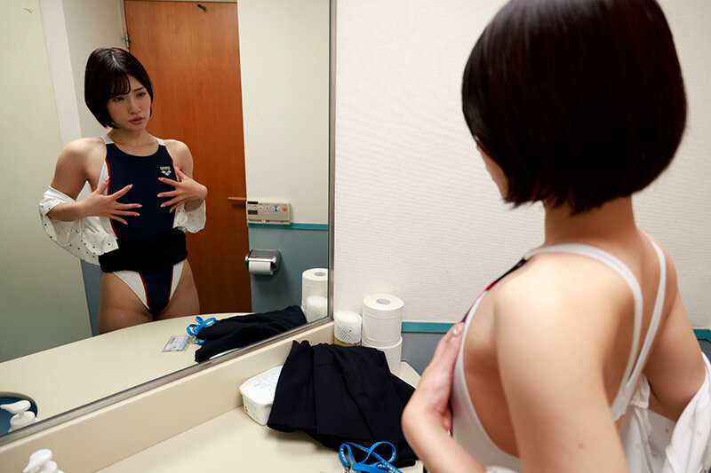 ・作品:「私、競泳水着好きでごめんなさい…」 いつも競泳水着を着て興奮しています 服の下に水着を着て働くOL 宮城りえ